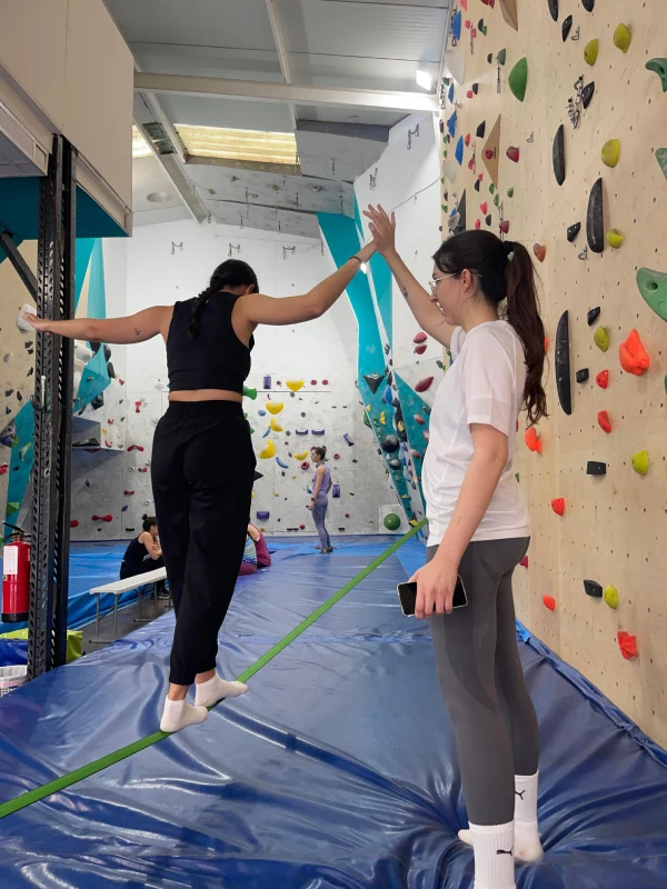 No todo fue apretar regletas. La zona de slackline y las balance boards estuvieron a tope de actividad. Entre risas y algún que otro tambaleo, practicamos el equilibrio y la paciencia, demostrando que el deporte es, ante todo, diversión y ganas de probar cosas nuevas juntas.